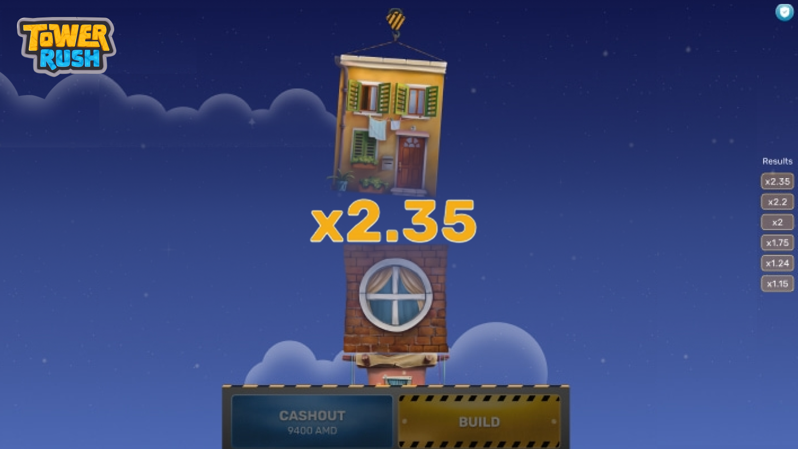 Es un juego de casino turbo en el que se construyen edificios, piso por piso, y si están colocados correctamente se acumulan ganancias. Los pisos sucesivos que se construyan correctamente sobre esta base multiplican las ganancias acumuladas. El jugador pierde si las torres se derrumban.
